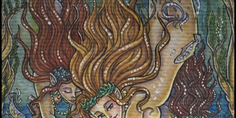 Hice este dibujo más bien por diversión que para el concurso al cual lo envié. La inspiración viene claro está de la mitología nórdica y a la figura de las tres ninfas acuáticas, nixies u ondinas (Las Hijas del Rin, Woglinde, Wellgunde y Flosshilde) que custodiaban el Oro del Rin.