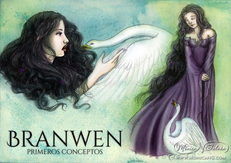 Conceptos y bocetos de Branwen, la doncella cuervo, reciclando viejos bocetos de Miserere y con los nuevos personajes de Argoel la druida y Gormlaith la «niña azul» selkie.