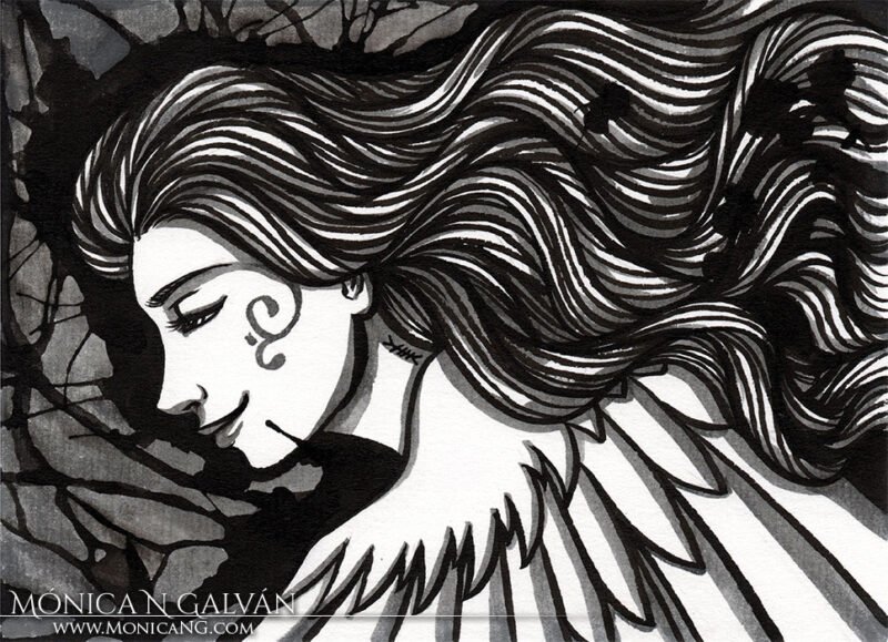 «Then some erased faces approached me and tended their hands, suing my company, offering me being with them shadows and ashes.» Annarien’s punishment for defying the gods. You can read here her story (spanish) This speedpainting is a remake of an older painting 🙂