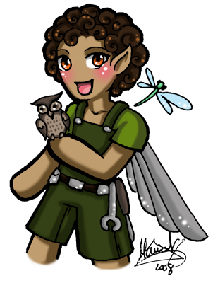 Fauno es un duende de la tierra y le encantan los animales, los experimentos y los aparatos tecnológicos. Dicen que ha sabido montar su propio robot-búho-ecológico alimentado por energía solar.